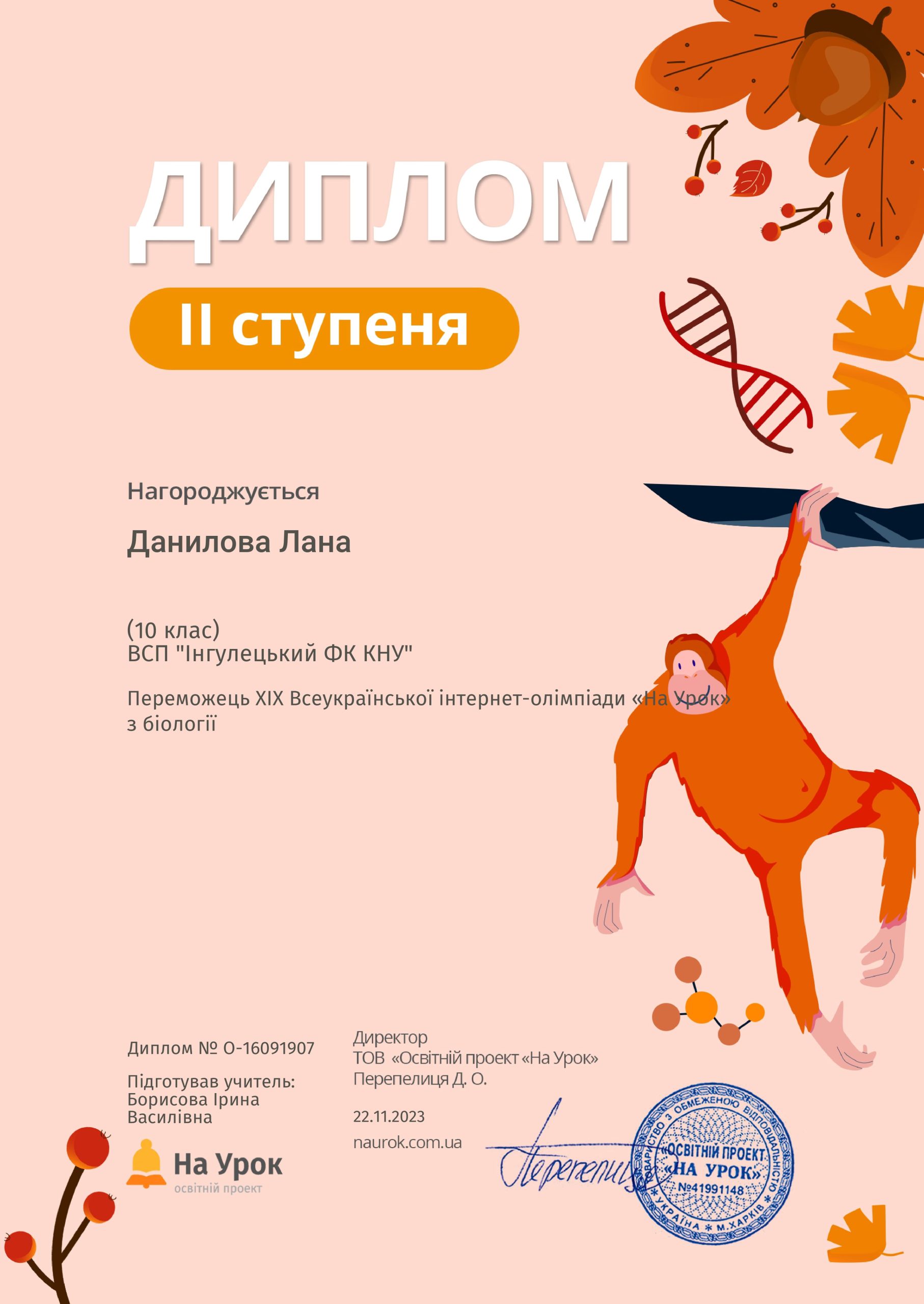 Вітаємо студентів 1-2 курсів з успішною участю в ХІХ Всеукраїнській інтернет – олімпіаді «На урок» з біології! Дипломами ІІ ступеню нагороджені Данилова […]