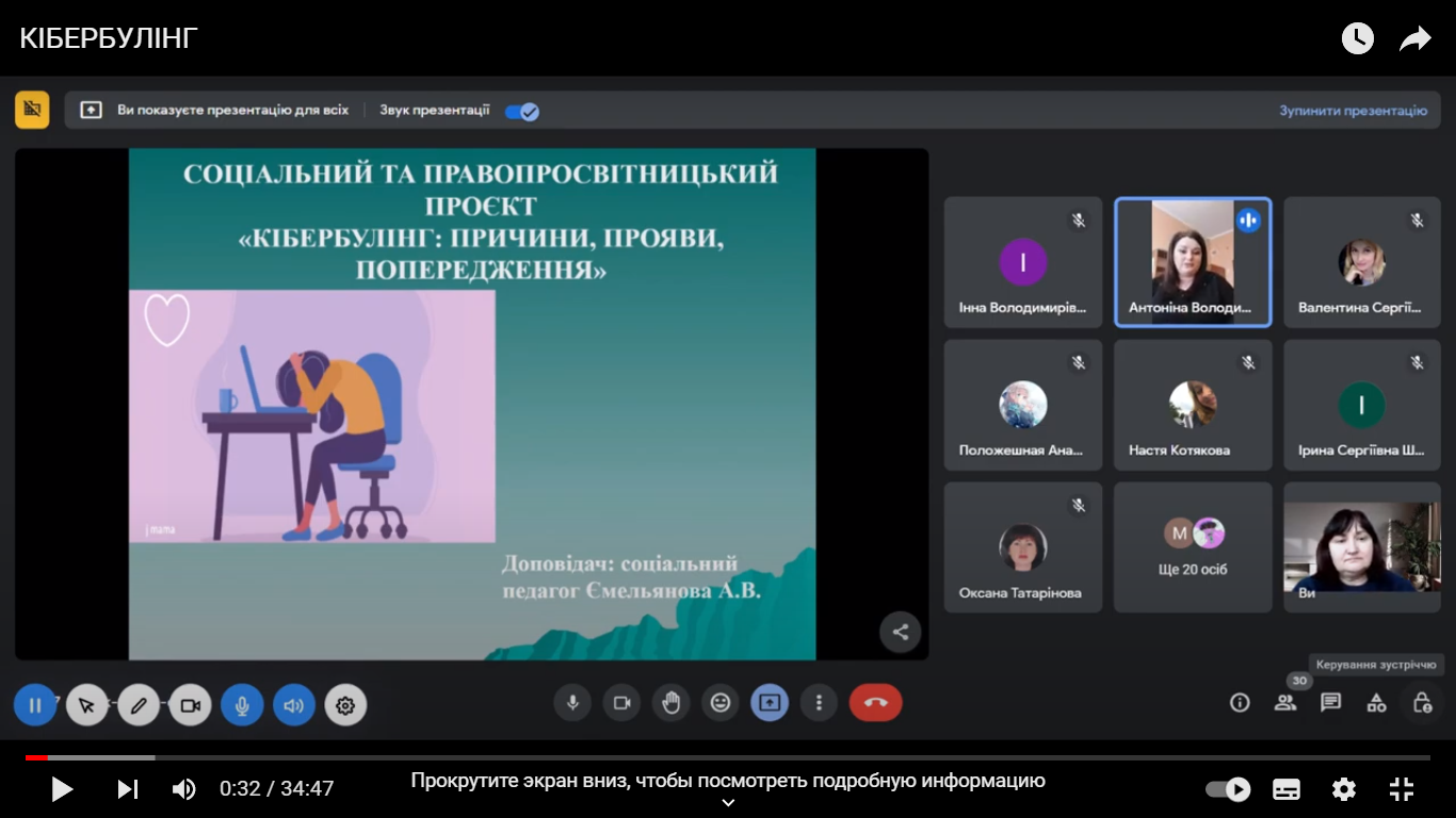 Соціальний правопросвітницький захід на тему «Кібербулінг: причини, прояви, попередження»