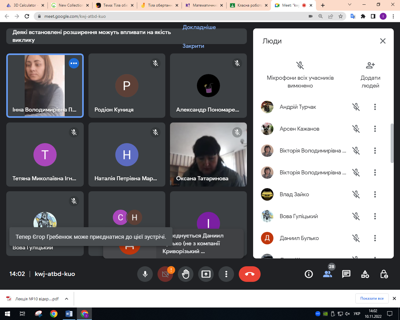 11.11.202202.12.2022Без категорії Відкрите заняття з математики 10 листопада 2022 року викладач Підгайна І.В. провела відкрите заняття з математики у групі ВР-21 1/9. На занятті студенти вивчали тіло обертання […]