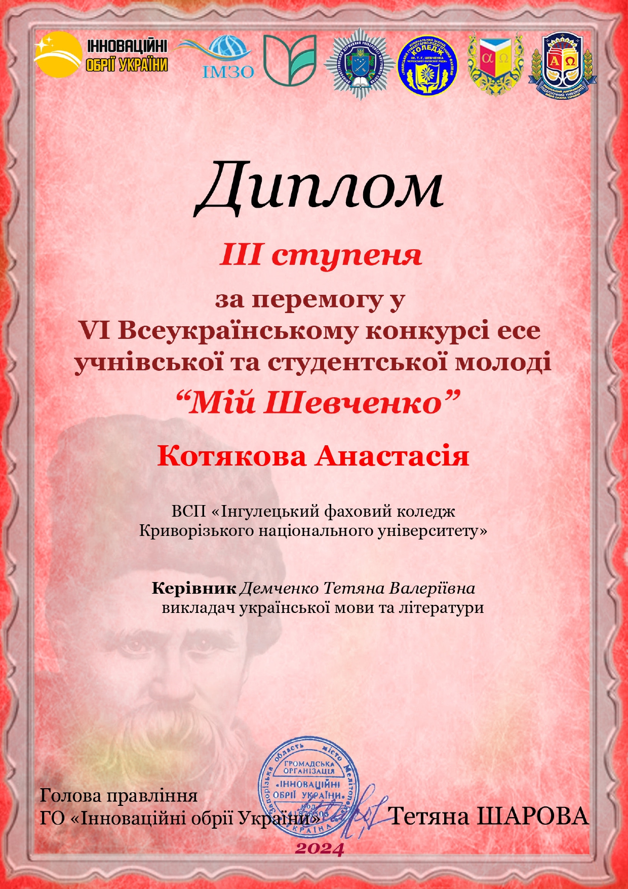 Всеукраїнський конкурс есе учнівської та студентської молоді «Мій Шевченко»